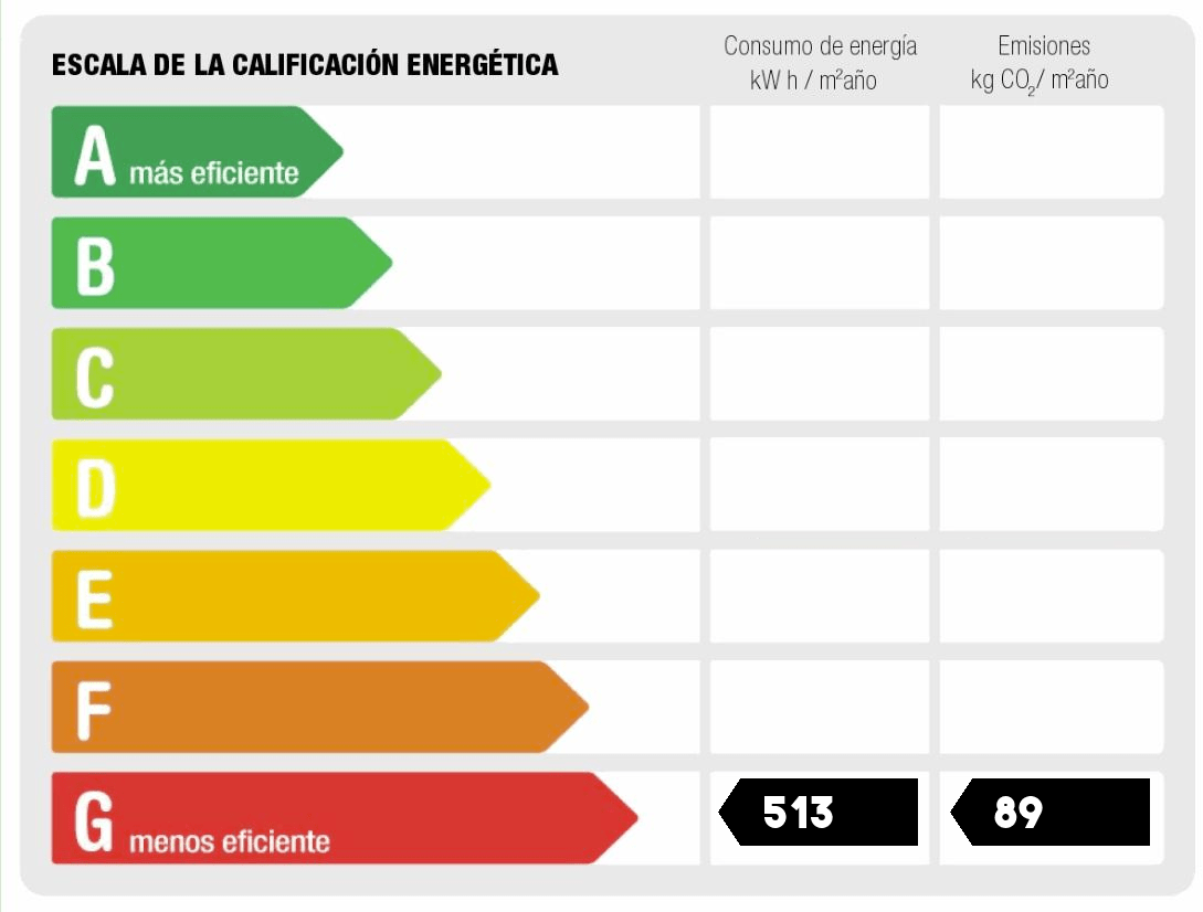 - Consumo de energía (kwh/m2 año): 513.
